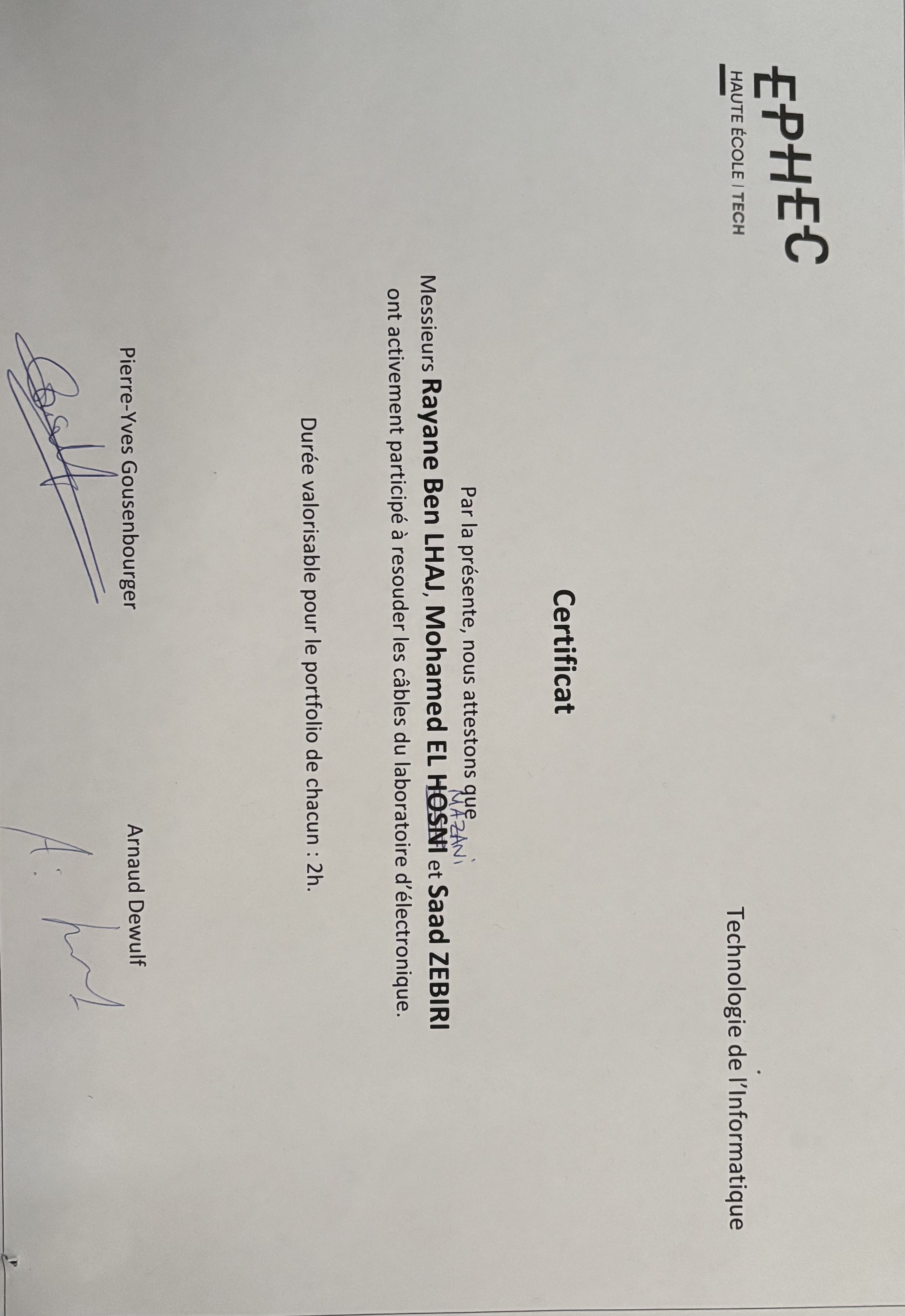 En avril 2025, les professeurs du laboratoire d'électronique de l'EPHEC ont sollicité de l'aide pour restaurer l'ensemble des câbles de test et de connexion du laboratoire. Ces câbles, utilisés intensivement par les étudiants depuis plusieurs années, présentaient des problèmes de connectivité et nécessitaient un diagnostic complet et des réparations.